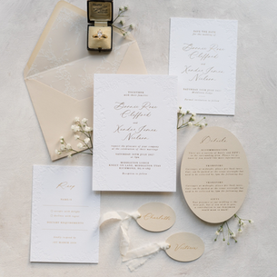 Eliza May Prints is a luxury wedding stationery studio specialising in bespoke and semi-custom designs for modern, romantic celebrations. We specialise in refined finishes such as foil and embossing, creating beautifully coordinated invitation suites and on-the-day stationery. Each design is thoughtfully crafted to reflect a couple’s unique style, resulting in timeless paper goods that set the tone for an unforgettable wedding day.